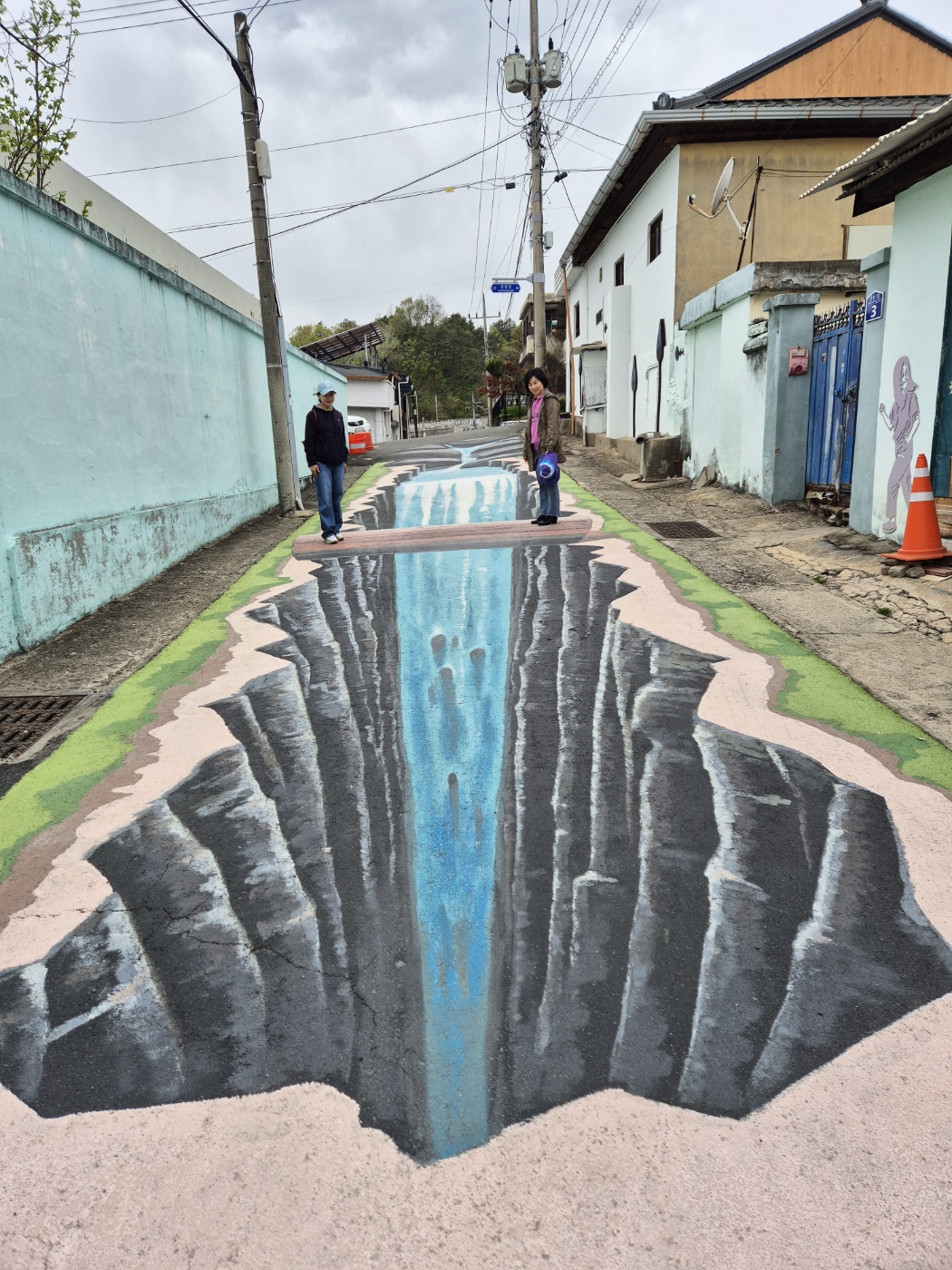 뿐만 아니라 마을 바닥까지 입체적으로 그려져 있어 관광객들이 많이 찾습니다.
