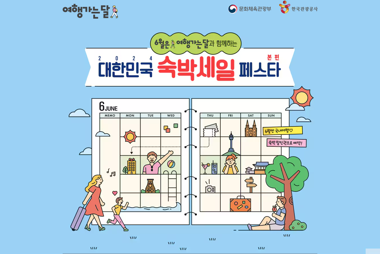 2024년 6월은 여행가는 달로 정해졌습니다! 문화체육관광부와 한국관광공사가 공동주최하는 2024 대한민국 숙박 세일 페스타의 지역 특별 기획전이 시작되었습니다. 이 행사는 해외 여행 대신 국내 여행을 즐기라는 취지로, 숙박 요금을 크게 할인해드리는 쿠폰을 선착순으로 발급하는 행사입니다.